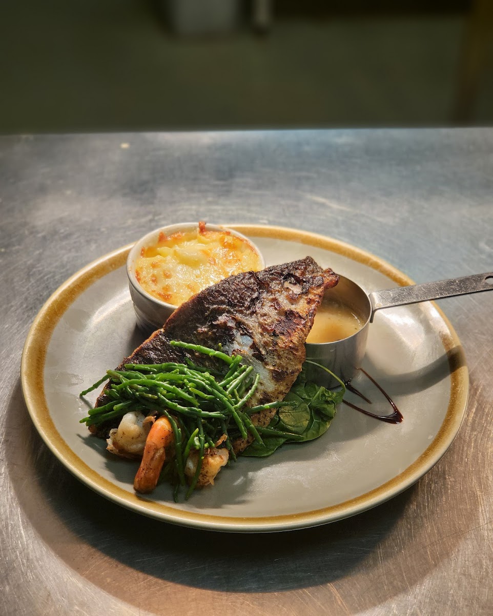 One of the highlights of The Spotted Cow is its fantastic beer selection, perfect for pairing with the restaurant’s popular dishes. You’ll find a wide array of hearty favorites like Beer Battered Cod & Chips, 10oz Sirloin Steak, and the ever-loved Sunday Roast Beef. If you’re in the mood for something a little more exciting, try their Pork Belly & Chorizo or Lamb Rump, each delivering bold flavors that will keep you coming back for more. For those with a sweet tooth, Eton Mess and Apple Crumble make the perfect end to a delicious meal.